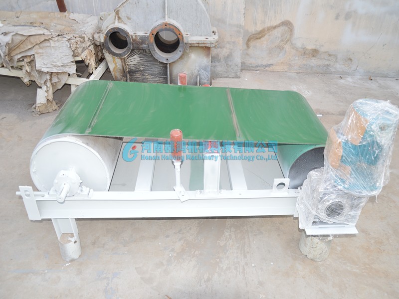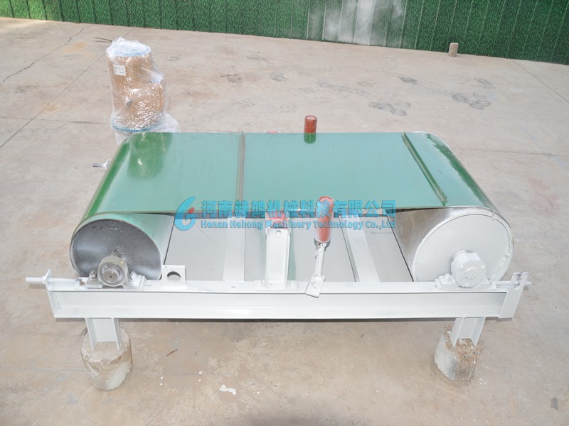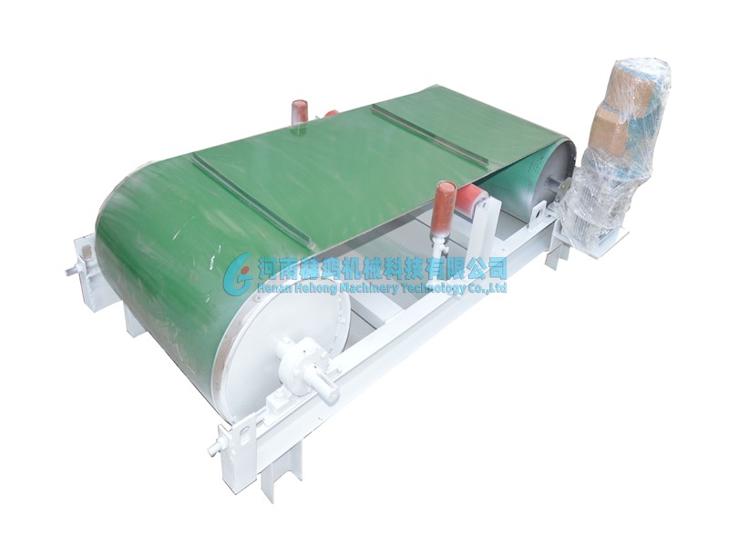 HHFX系列除鐵器由兩個滾筒和一條皮帶組合而成,其中一個滾筒為強磁滾筒,提供強磁力,依靠這個強磁滾筒可以有效將鐵分選出來,而另外一個滾筒作為主動輥,連接減速機和電機,為除鐵器提供動力。HHFX系列除鐵器一般平行安裝在皮帶輸送機的中間或末端,依靠磁滾筒的強磁力,選出物料中的金屬顆?;驂K鐵。